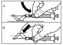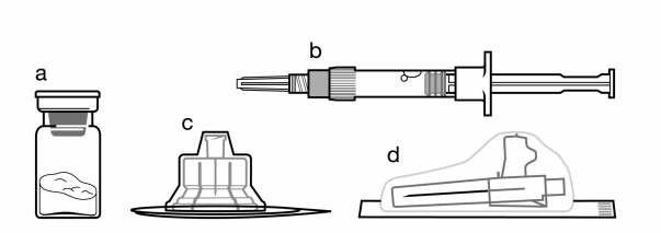 b | Eine Fertigspritze mit dem Suspensionsmittel zur Rekonstitution |