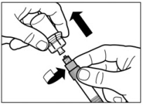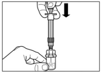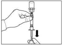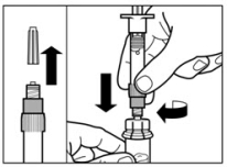 - Das Injektionskit auf Raumtemperatur erwärmen lassen. Das Injektionskit aus dem Kühlschrank nehmen und vor der Rekonstitution mindestens 30 Minuten (aber nicht länger als 24 Stunden) bei Raumtemperatur erwärmen lassen.