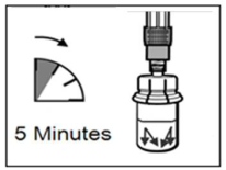 - Nach Zugabe der Verdünnungslösung sicherstellen, dass das Pulver vollständig getränkt ist, indem Sie das Fläschchen 5 Minuten stehen lassen.