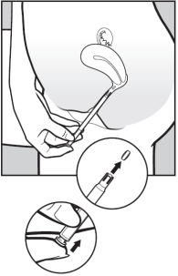 2. Führen Sie den Applikator in die Scheide sorgfältig ein, bis Sie einen leichten Widerstand spüren (8-10 cm).