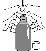 | 1. Entfernen Sie die Kappe durch kräftiges Herunterdrücken und drehen Sie sie entgegen dem Uhrzeigersinn (wie auf der Kappe angezeigt). |