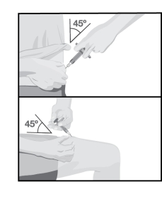 SCHRITT 8 | Wenn die Injektion beendet ist, ziehen Sie die Nadel langsam aus der Haut und halten dabei die Spritze weiterhin im selben Winkel.