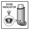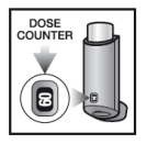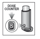 Auf der Rückseite des Inhalators befindet sich ein Dosiszähler, der Sie darüber informiert, wie viele Sprühstöße noch übrig sind. Jedes Mal, wenn Sie auf das Druckbehältnis drücken, wird ein Sprühstoß freigesetzt und der Dosiszähler zählt um 1 herunter. Achten Sie darauf, den Inhalator nicht fallen zu lassen, da dies bewirken kann, dass der Dosiszähler weiter zählt.