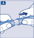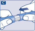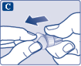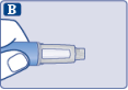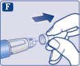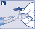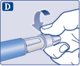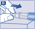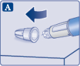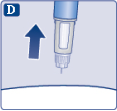 • Ziehen Sie die innere Nadelkappe ab und entsorgen Sie diese. Wenn Sie versuchen, sie wieder aufzusetzen, könnten Sie sich versehentlich mit der Nadel stechen. |