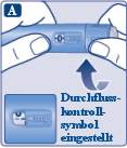 • Überprüfen Sie, ob die Lösung in Ihrem Pen klar und farblos ist. Schauen Sie durch das Sichtfenster. Wenn die Lösung trüb oder farbig aussieht, verwenden Sie den Pen nicht. |