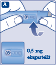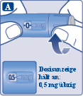 Nur die Dosisanzeige auf Höhe der Dosismarkierung zeigt an, dass 0,5 mg eingestellt wurde. | |