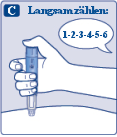 • Zählen Sie langsam bis 6, während Sie den Injektionsknopf gedrückt halten. |