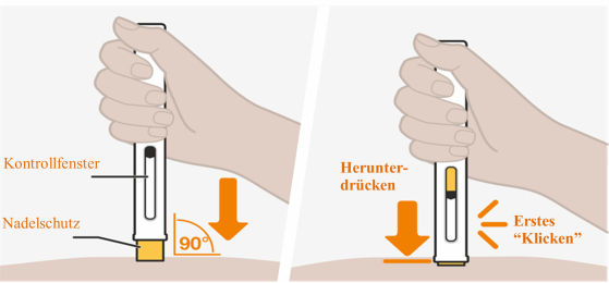 8. Halten Sie den Pen nach unten gedrückt um Ihre Injektion zu beenden | |