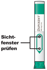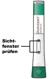 Schauen Sie sich das Arzneimittel durch das Sichtfenster des Fertigpens an.