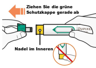 - Entfernen Sie die grüne Schutzkappe erst kurz vor der Injektion.