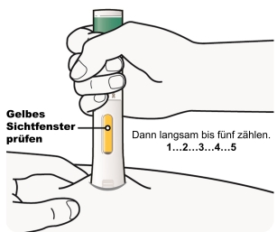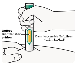 Halten Sie den Fertigpen weiter fest gegen Ihre Haut gedrückt.