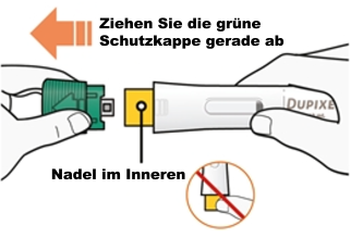 Entfernen Sie die grüne Schutzkappe erst, wenn Sie zur Injektion bereit sind.