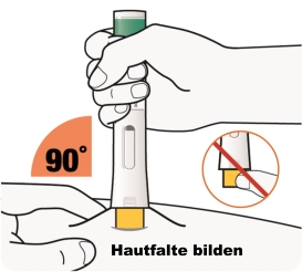 - Bilden Sie vor und während der Injektion eine Hautfalte.