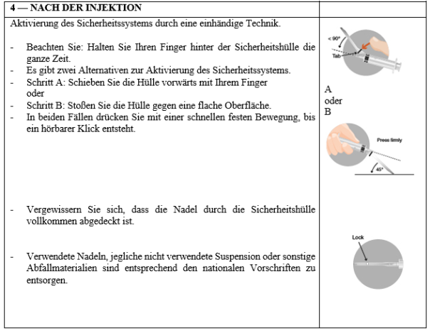 eine Injektion in den Muskel alle 4 Wochen (28 Tage).