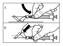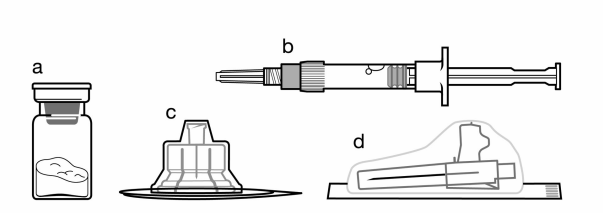 b | Une seringue préremplie de solution vectrice pour reconstitution |