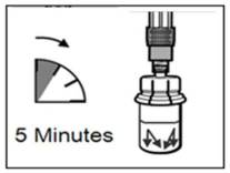 - Après avoir ajouté la solution de diluant, assurez-vous que la poudre est entièrement humidifiée en laissant reposer le flacon pendant 5 minutes.