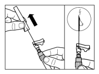- La trousse d’injection doit atteindre la température ambiante. Sortez la trousse d’injection du réfrigérateur et laissez-la revenir à température ambiante pendant au moins 30 minutes avant d’effectuer la reconstitution, mais ne dépassez pas 24 heures.