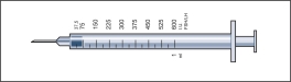 Votre médecin vous a prescrit une dose de Menopur Ferring exprimée en IU (unités). Afin d’obtenir la dose correcte, vous devez utiliser une des 9 seringues fournies pour l’administration, qui présentent une échelle de graduation en IU (unités) de FSH/LH.