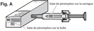 Vérifiez la date imprimée sur la boîte et la seringue (Voir Fig. A) pour vous assurer que la date de péremption n'est pas dépassée. N'utilisez pas la seringue si la date de péremption est dépassée. Cela est important pour s'assurer que la seringue et le médicament peuvent être utilisés en toute sécurité.