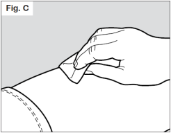 Nettoyez le site d'injection choisi en utilisant le tampon alcoolisé (Voir Fig. C) afin de réduire le risque d'infection.