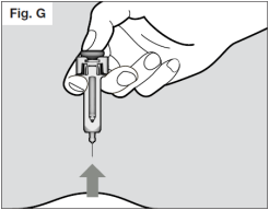Maintenez le piston enfoncé pendant que vous retirez l'aiguille de la peau avec le même angle que pour l'insertion. (Voir Fig. G)