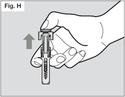 Une fois l'aiguille complètement retirée de la peau, vous pouvez relâcher le piston et laisser le protège-aiguille recouvrir l'aiguille pour la protéger. (Voir Fig. H)