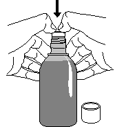 | 1. Retirez le bouchon du flacon en appuyant fermement dessus et en le faisant tourner dans le sens contraire des aiguilles d’une montre (comme indiqué sur le dessus du bouchon). |