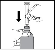| 7. Tout en tenant bien la seringue en place, retournez avec précaution le flacon et la seringue.