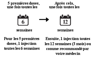 - Vous allez être traité avec une injection toutes les 6 semaines pour les 5 premières injections.