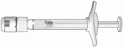 4. | Pour vérifier l’absence de bulles d’air, tenir la seringue en pointant l’aiguille vers le haut. Si des bulles d’air sont présentes, tapoter doucement la seringue avec votre doigt jusqu’à ce que les bulles remontent à la surface. |