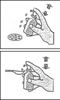 Lors de la première utilisation, pousser plusieurs fois sur le bouton jusqu'à l'apparition de la solution (ce qui est nécessaire pour des raisons techniques, afin de remplir le mécanisme de la pompe et pour entamer une distribution régulière).