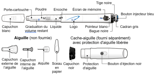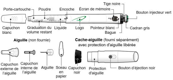 Le cache-aiguille est un élément optionnel fourni séparément pour cacher l’aiguille pendant l’injection.