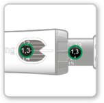 - Alignez le logo noir du cache-aiguille sur le logo vert de votre stylo. Poussez doucement le cache-aiguille en place sur votre stylo jusqu’à entendre un clic.