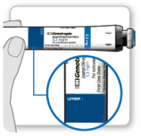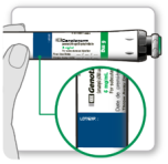 - Tenez votre stylo au-dessus du site d’injection.