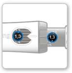 - Si les doses ne sont pas identiques, vérifiez que vous avez tourné le cadran gris dans la direction des flèches jusqu’à l’arrêt des clics.