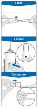- Si la protection d’aiguille se détache, renfoncez-la dans le cache-aiguille en le poussant jusqu’à entendre un clic.