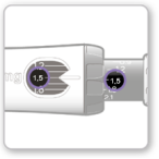 - Votre dose sur la tige noire doit s’aligner sur le pointeur blanc.