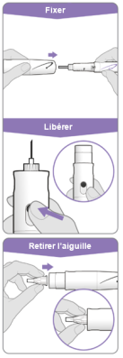 - Jetez (éliminez) l’aiguille dans un récipient approprié pour objets tranchants