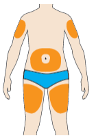 - Vous pouvez injecter le médicament dans (voir image) :