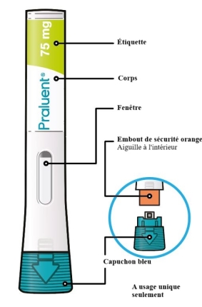 Avant que vous utilisiez le stylo pré-rempli pour la première fois, votre médecin, votre pharmacien ou un(e) infirmier/ère vous montrera comment injecter Praluent.