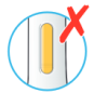 - Placez l’embout de sécurité jaune contre votre peau à un angle d’environ 90°.