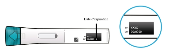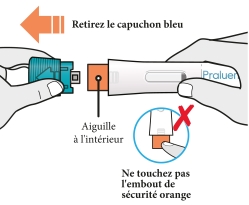 Ne retirez pas le capuchon bleu avant d’être prêt(e) à injecter le produit.