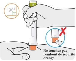 Ne touchez pas l’embout de sécurité orange. L’aiguille se trouve dans cet embout de sécurité orange.