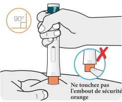 Ne touchez pas à l’embout de sécurité orange. L’aiguille se trouve dans cet embout de sécurité orange.
