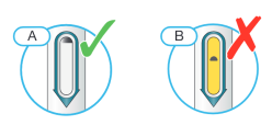 Une fenêtre jaune unie signifie que le stylo a déjà été utilisé.