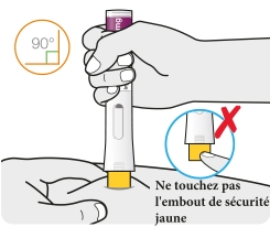Ne touchez pas à l’embout de sécurité jaune. L’aiguille se trouve dans cet embout de sécurité jaune.