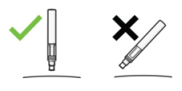 Stylo SensoReady de Cosentyx 150 mg représenté avec le capuchon retiré. Ne retirez pas le capuchon avant d’être prêt(e) à faire l’injection. |