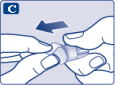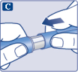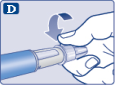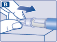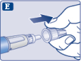 • Retirez le capuchon interne de l’aiguille et jetez-le. Si vous essayez de le remettre, vous risquez de vous piquer accidentellement avec l’aiguille. |