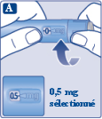 • Tournez le sélecteur de dose afin de sélectionner 0,5 mg. |