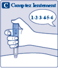 • Comptez lentement jusqu’à 6 en maintenant le bouton de dose enfoncé. |
